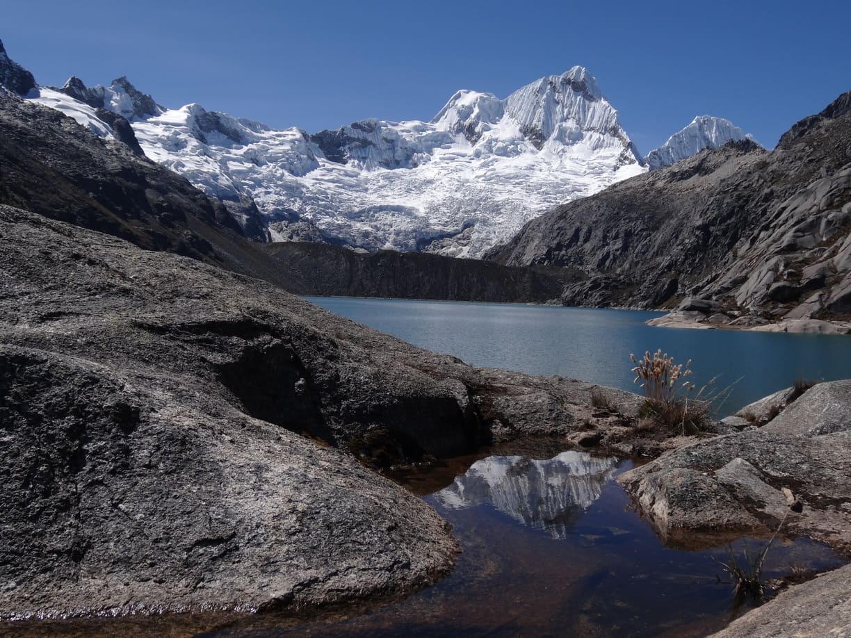Este día normalmente hay mucho viento en el Paso Garagara, pero las vistas son impresionantes y diferente a otros días observaremos los nevados Santa Cruz, Quitaraju y por supuesto al Alpamayo la cara norte. Tiempo de caminata 7 horas aprox.