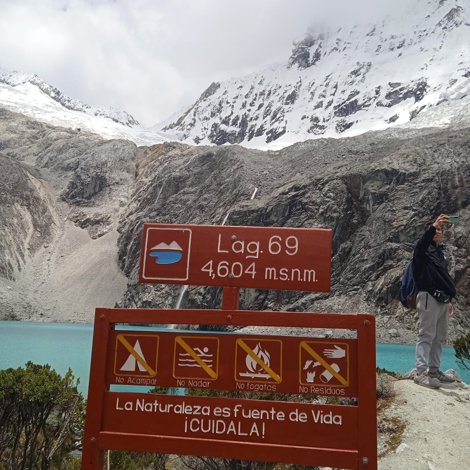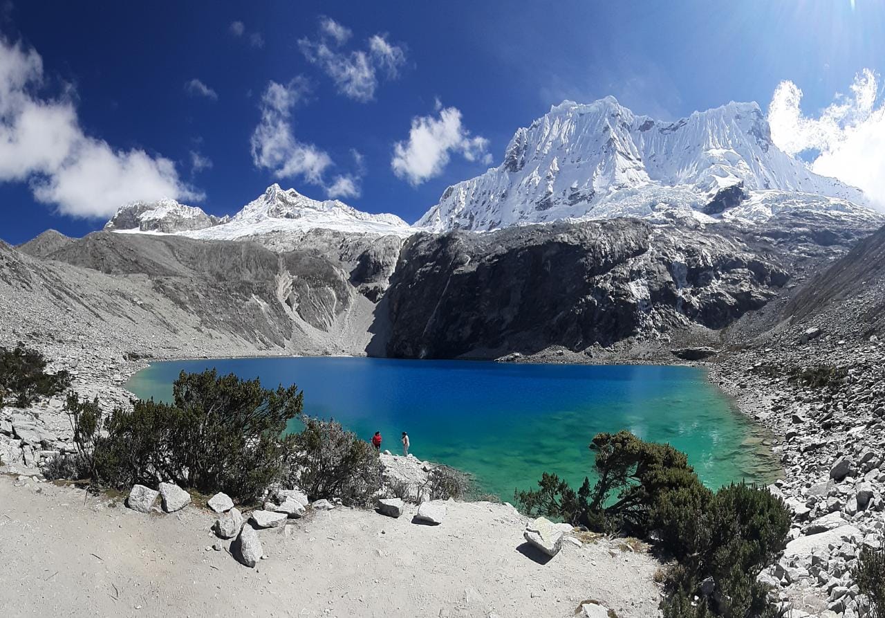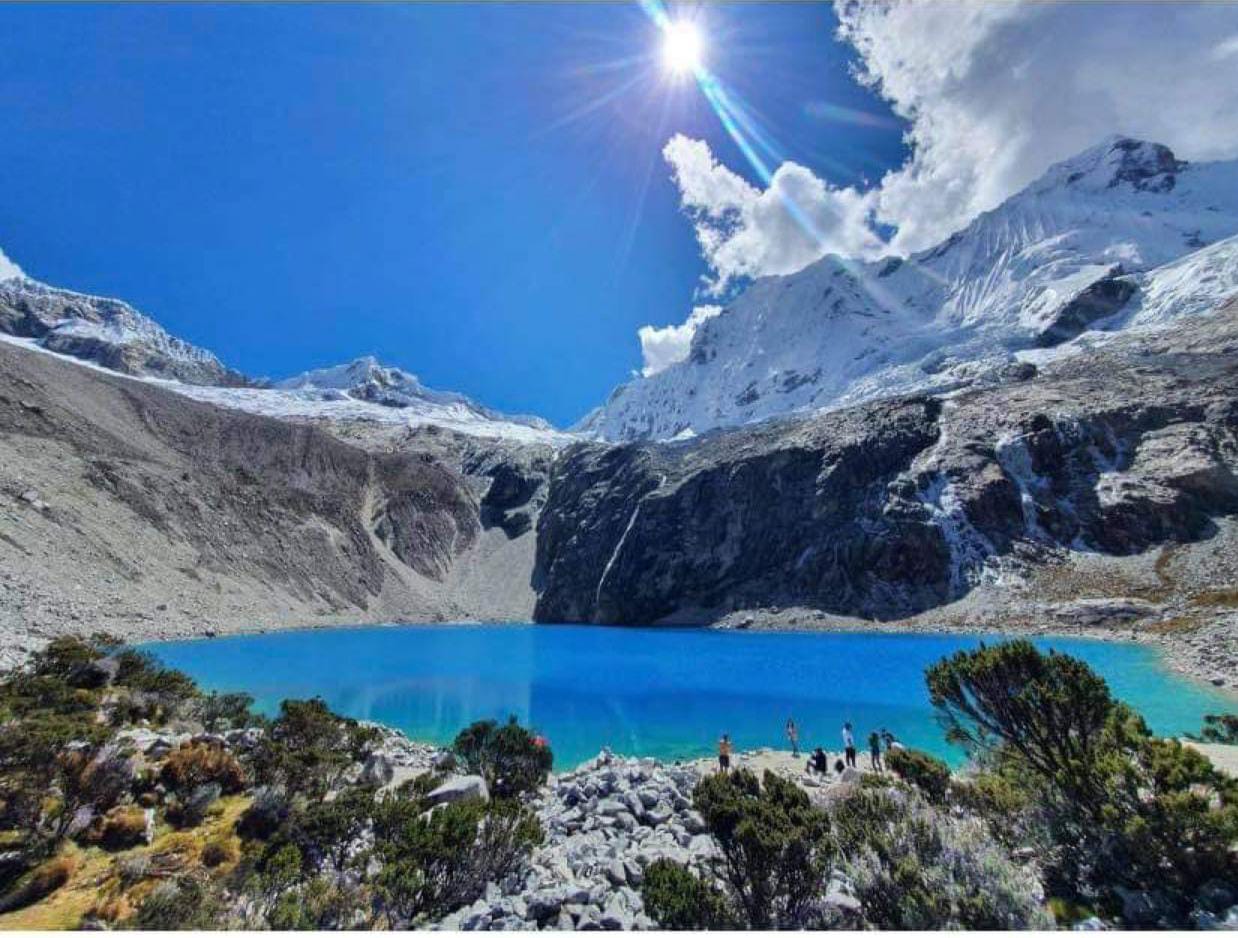 Paradas: en restaurante para el desayuno, en el puesto de control para el pago del ticket de ingreso, laguna Llanganuco (Chinancocha), para tomarnos con la vista panorámica, desde Cebollapampa inicia nuestra caminata hacia la Laguna 69 dónde podremos apreciar hermosas vistas a los Nevados y Paisajes cómo son: Pisco, Yanapaccha, Huascarán, Chacraraju y otros más, la caminata es en zigzag finalmente llegaremos a la más hermosa laguna 69.